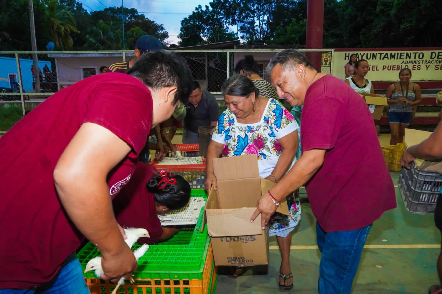 En una jornada de trabajo que fortalece la economía familiar y promueve la autosuficiencia alimentaria, el presidente municipal Erik Borges Yam, encabezó la entrega de 7 mil 850 gallinas ponedoras del programa Prosperidad Alimentaria Familiar (PROSAF).