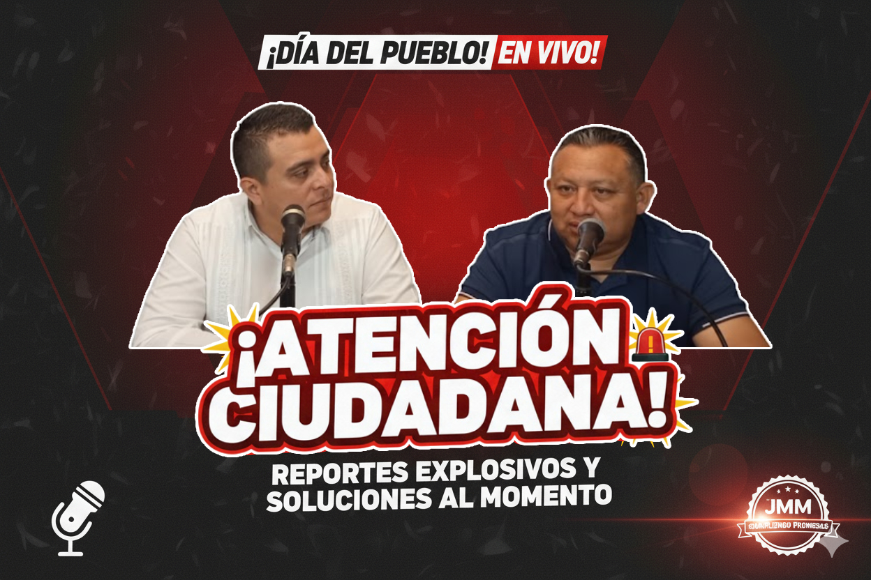 El programa 'El Día del Pueblo' presenta al presidente Erick Borges Jan, atiende denuncias y solicitudes ciudadanas, informa avances en obras, programas sociales, dinámicas y apoya salud, infraestructura y proyectos comunitarios en José María Morelos.